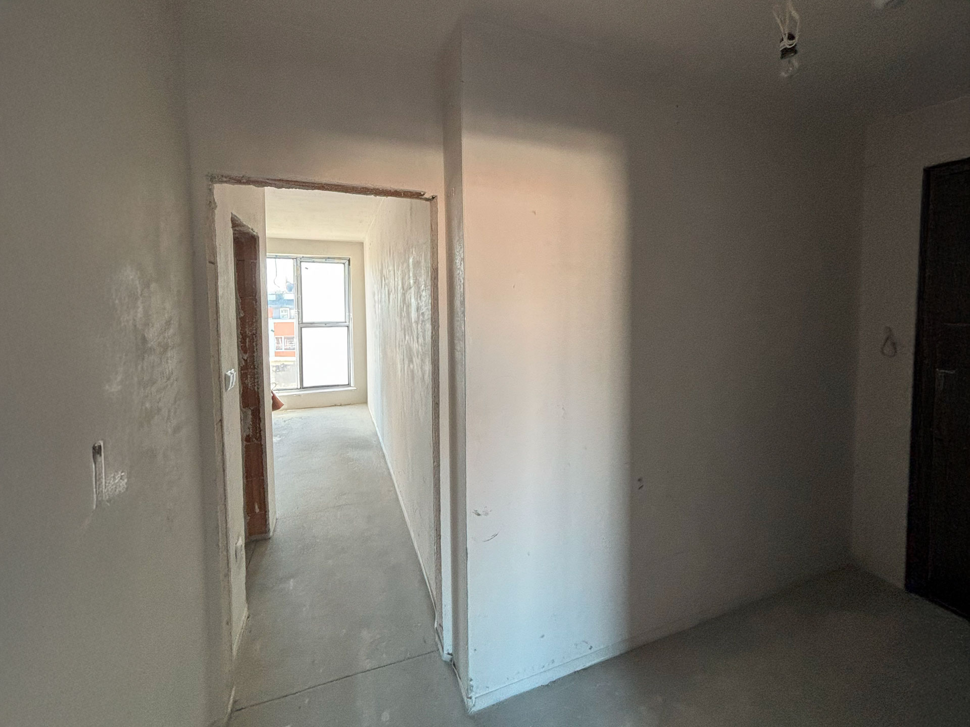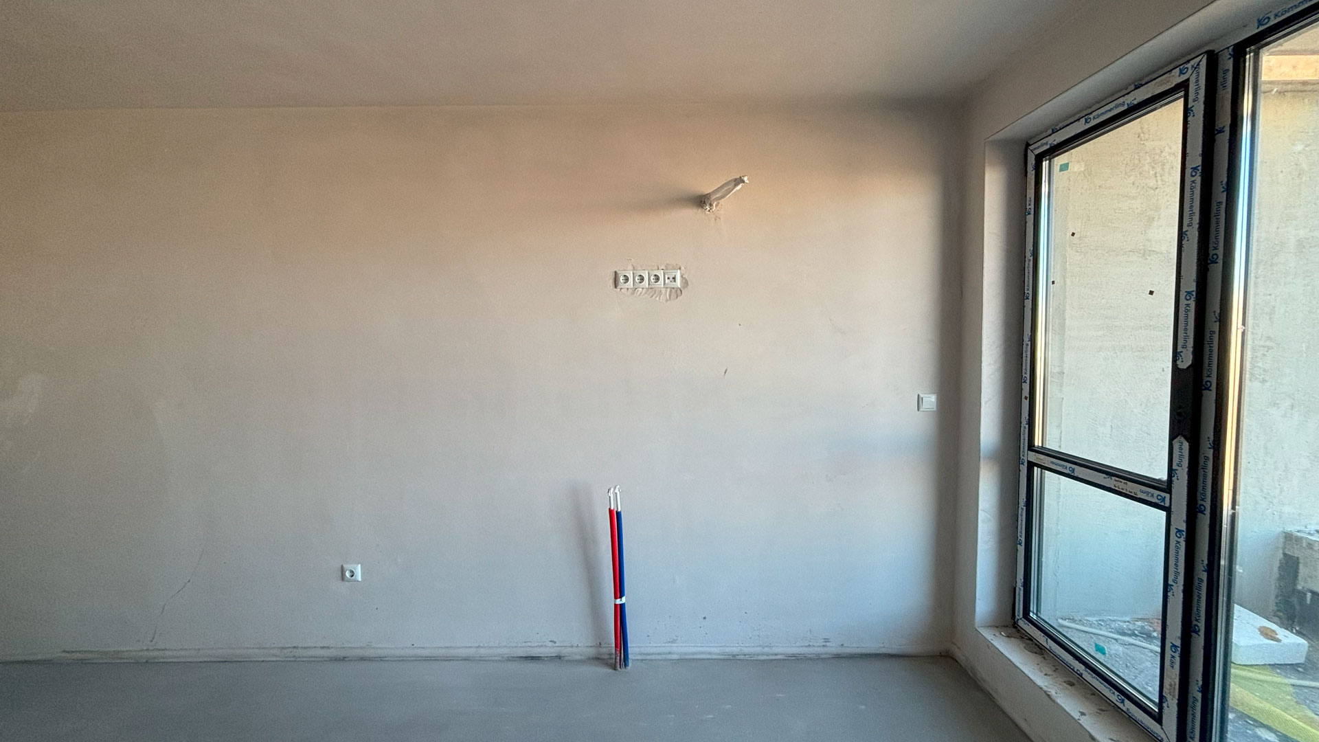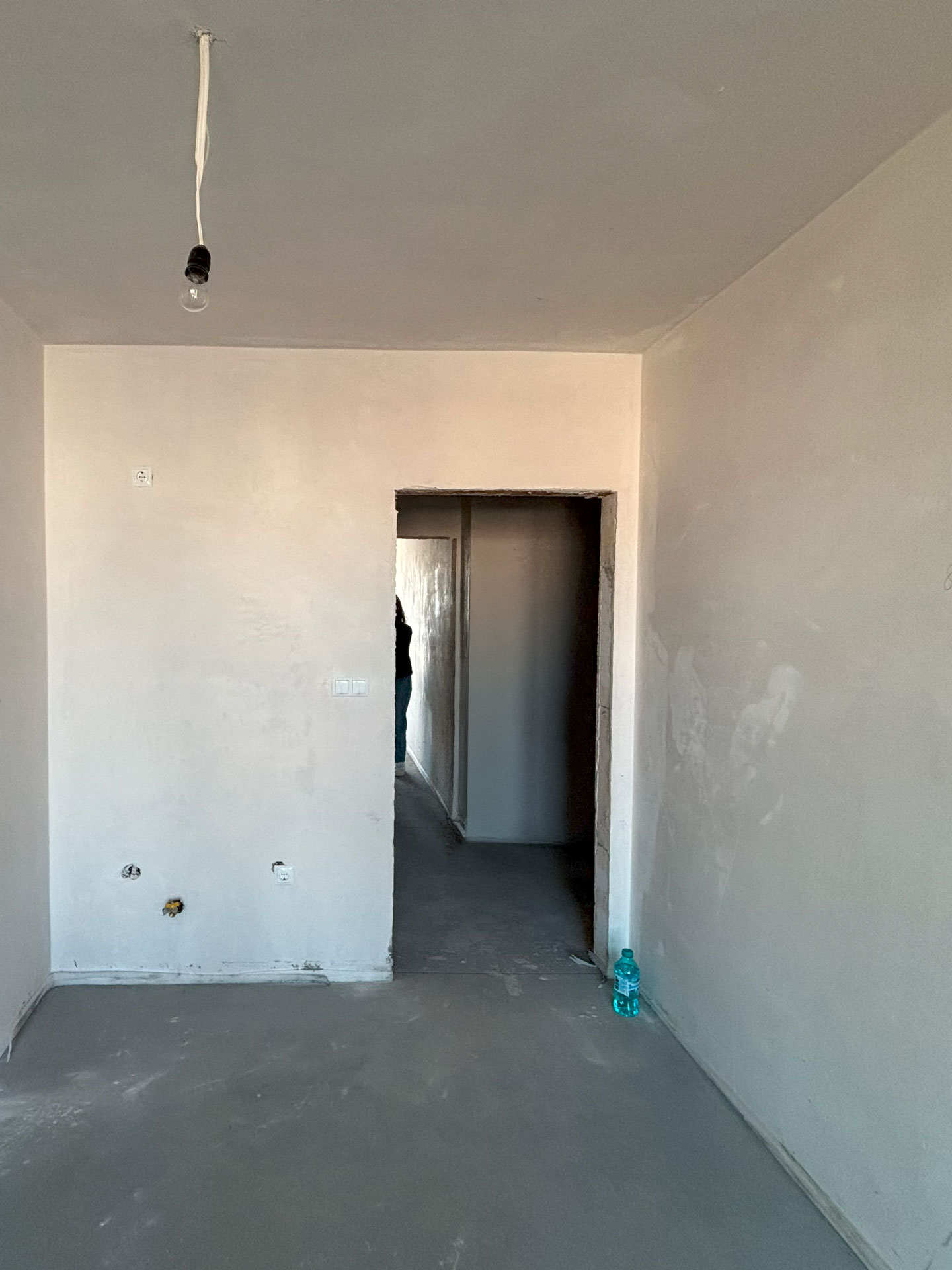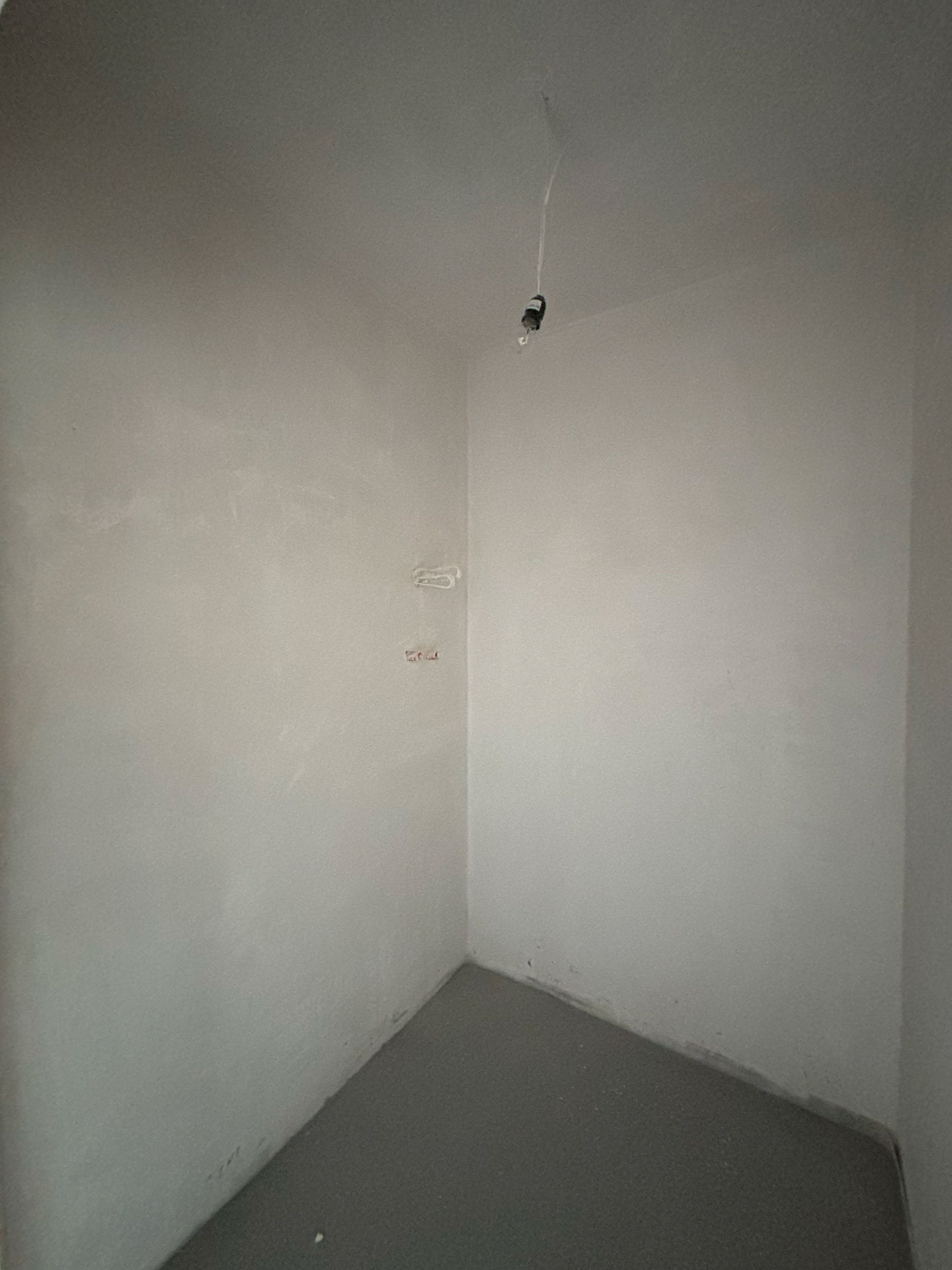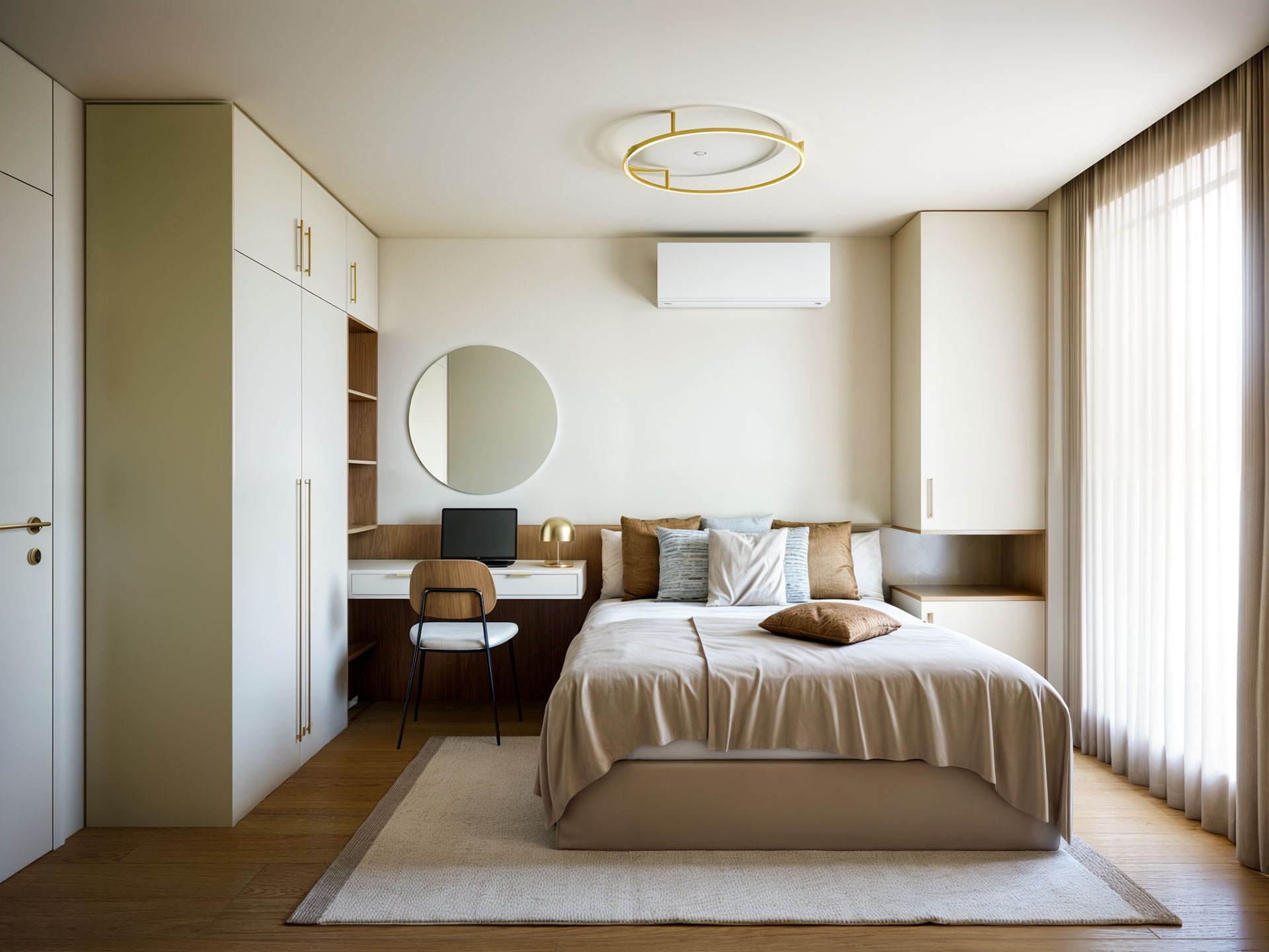 The 11 sq.m. bedroom is designed to be both cozy and highly functional. A double bed takes center stage, complemented by a custom-made wardrobe with an integrated niche for books and personal items. To accommodate work-from-home needs, we included a compact desk that fits seamlessly into the layout. The design emphasizes simplicity and comfort, with clean lines and clever storage solutions that keep the space organized and uncluttered.